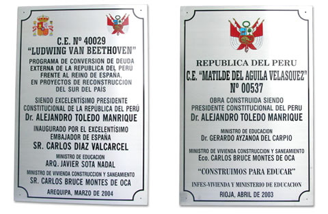 Placas personalizadas grabadas sobre bronce o acero, con la aplicación de color de acuerdo su imagen corporativa.