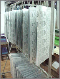 Se emplea láminas de aluminio anodizado; el diseño es transferido a la placa por un proceso fotográfico. Por su alta resistencia es usado en aplicaciones expuestas al medio ambiente, a grasas, aceites, agentes químicos diluidos, productos de limpieza.<br /> Los colores disponibles son:<br /> Negro, Rojo y Azul